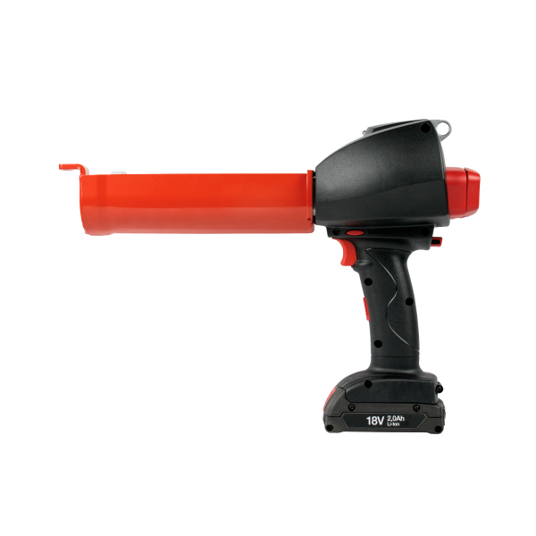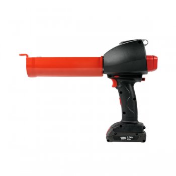 Зарядить аккумулятор и вмонтировать его в ручке дозатора. Разблокировать кнопкой выдавливающий стержень и оттянуть его назад.